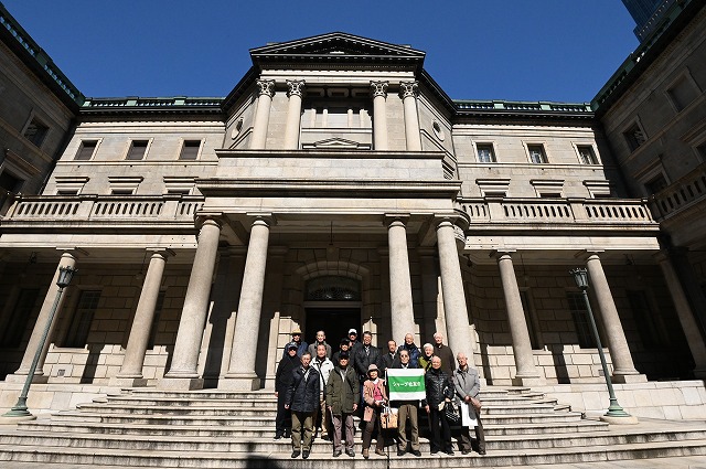日本銀行本館の見学は、とても人気のある場所であり、予約がなかなか取れませんでしたが、ようやく朝9時30分からのコースに17名の予約が取れました。参加された皆さんには通勤ラッシュの中を参集してもらったことに感謝です。