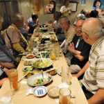 歩いて5分くらいの懇親会場に場所を移していよいよ懇親会です。この辺りは会社が多く、休日は休業している飲食店が多いのですが、そのせいもあり、貸し切り状態で懇親会をすることができました。お酒は飲み放題、出てくる料理の多さ・おいしさにみんな大満足の懇親会でした。懇親会席上でも皆さんにサプライズのプレゼントがありました。国立演芸場の入場料が、団体扱いで最初予想したより安くなったことから、先ほど皆さんに出していただいた参加費の一部を返金することにして、一人500円づづのバックをしました。「第1ブロックの会計は大丈夫か?」 と心配していただきましたが、このサプライズに加えて大満足の料理とお酒で、時間いっぱい楽しむことができました。ブロック活動の合言葉「みんなで出かけて おいしいものを!」が実践でき、参加して頂いた皆さんに大満足していただいたことは、やってよかったと幹事としても大満足することができる一日でした。