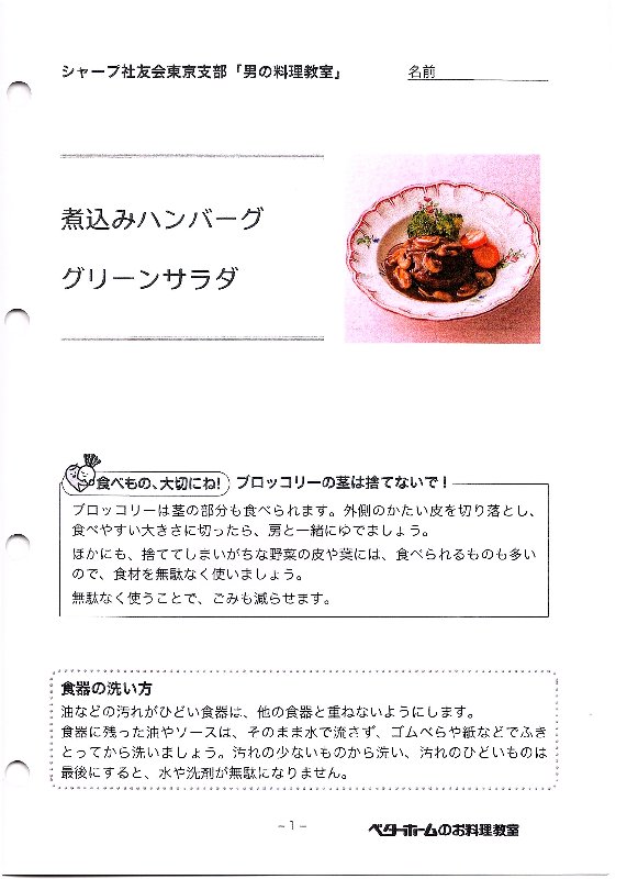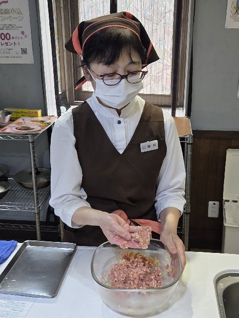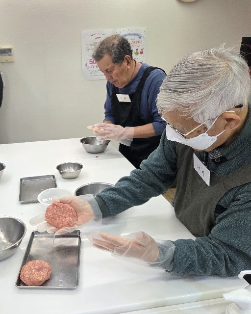 冒頭、先生からハンバーグの豆知識の話がありました。ハンバーグの起源はドイツで肉をみじん切りにして焼いた肉料理だそうです。先生が時々言われる豆知識は非常に興味深く「へ~」と驚かされます。