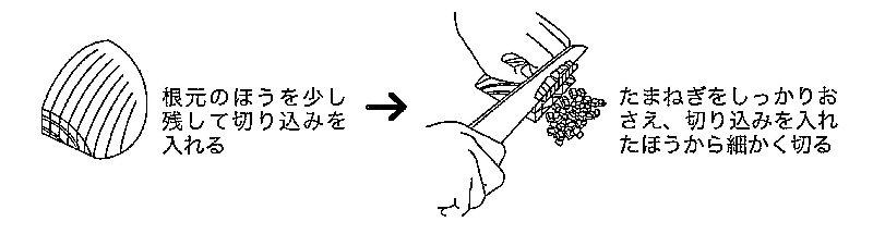 また、たまねぎを押さえて切る時の手は、指を丸めて押さえます。