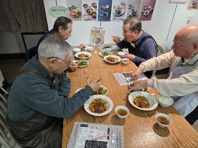 料理教室では、参加者が共同作業で料理を作り、会食時に会話が弾み交流を深める場になっています。自ら食事を作ることで脳の活性化ばかりでなく、健康につながります。